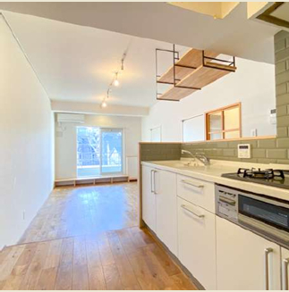 妙蓮寺駅徒歩10分、新規フルリノベーション済物件☆、駅から平坦、閑静住宅街、二階以上(3階)、最上階、南向き、日当り・眺望良好、フローリング(無垢床)、バストイレ別、追焚バス、独立洗面脱衣室、シャンプードレッサー、室内洗濯機置場、システムキッチン(2口ガスコンロ&グリル付)、エアコン、収納、バルコニー、モニタ付インターホン、駐輪場